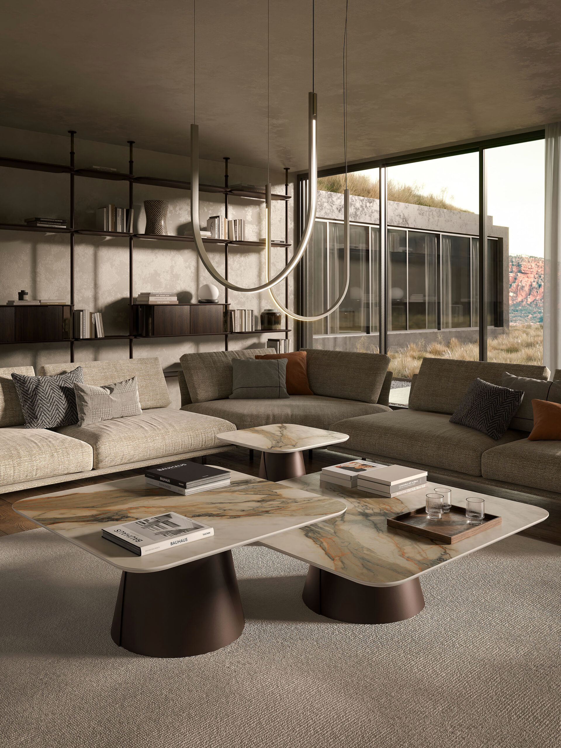 A több szintű struktúra játékosságot és ritmust visz a nappali enteriőrbe, miközben a kerámia felületek kifinomult fényjátéka és elegáns márványhatása finom luxust sugall. A Marmi kerámia kollekció exkluzív árnyalatai — világostól a mély tónusokig — harmonikusan illeszkednek modern, minimál vagy akár elegánsabb, klasszikus terekbe is.
