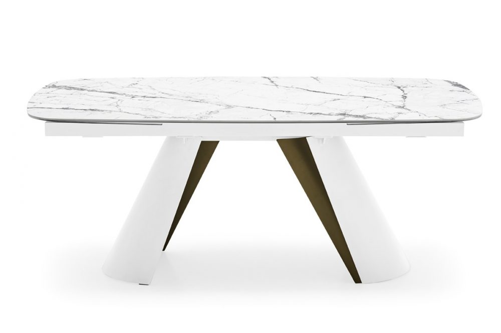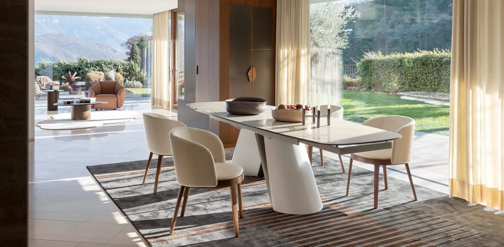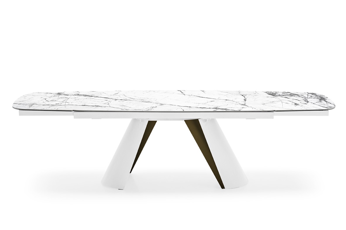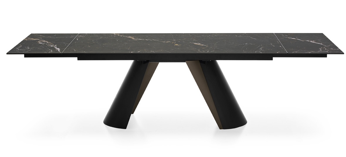 A Calligaris APIAN egy lenyűgöző, építészeti szemlélettel tervezett bővíthető étkezőasztal, amely eleganciájával és merész formavilágával azonnal átalakítja a teret. Az alapot alkotó, ívelt és döntött fémlemez könnyed, lebegő hatást kelt, miközben rendkívül stabil tartószerkezetet biztosít. A finoman megmunkált részletek és a prémium anyagok páratlan vizuális élményt nyújtanak minden enteriőrben.