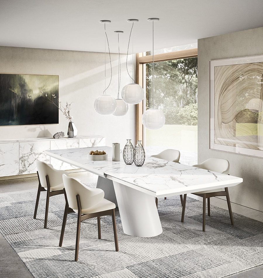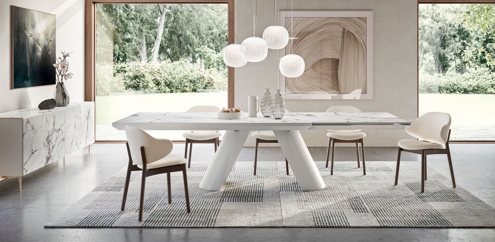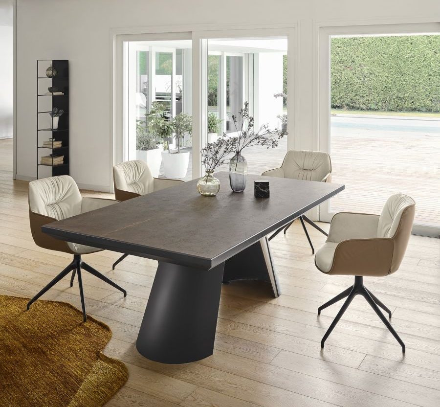 A Calligaris Apian a modern fémes felületeket a klasszikus arányérzékkel ötvözi, így egyszerre kortárs, időtálló és művészi. Egy váratlan, karakteres darab, amely képes egy teljes belsőépítészeti projektet új irányba fordítani. Tökéletes nagy belmagasságú terekbe, minimalista otthonokba vagy elegáns, reprezentatív étkezőkbe. Kerámia asztallapja, amely 8-féle színben kérhető tovább emeli a modell eleganciáját.