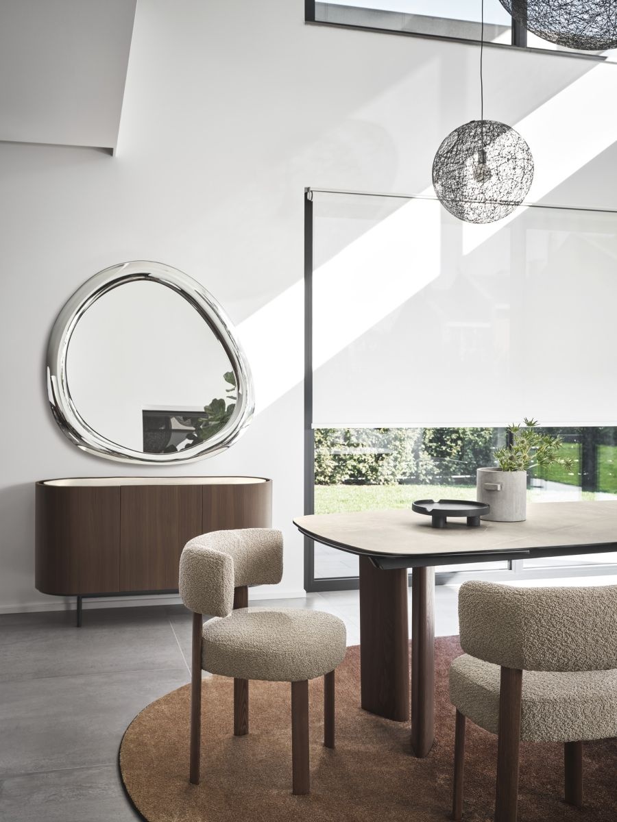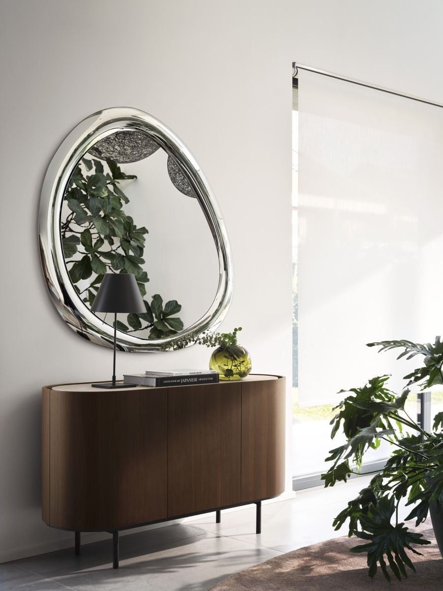 A modell különlegessége, hogy egyszerre dekoratív és funkcionális: nagy felülete miatt látványosan növeli a tér érzetét, szabálytalan formája pedig organikus, mégis modern megjelenést biztosít. Az Aura olyan designkiegészítő, amely önmagában képes megváltoztatni egy enteriőr hangulatát – finoman tükrözi, formálja és megemeli a teret.