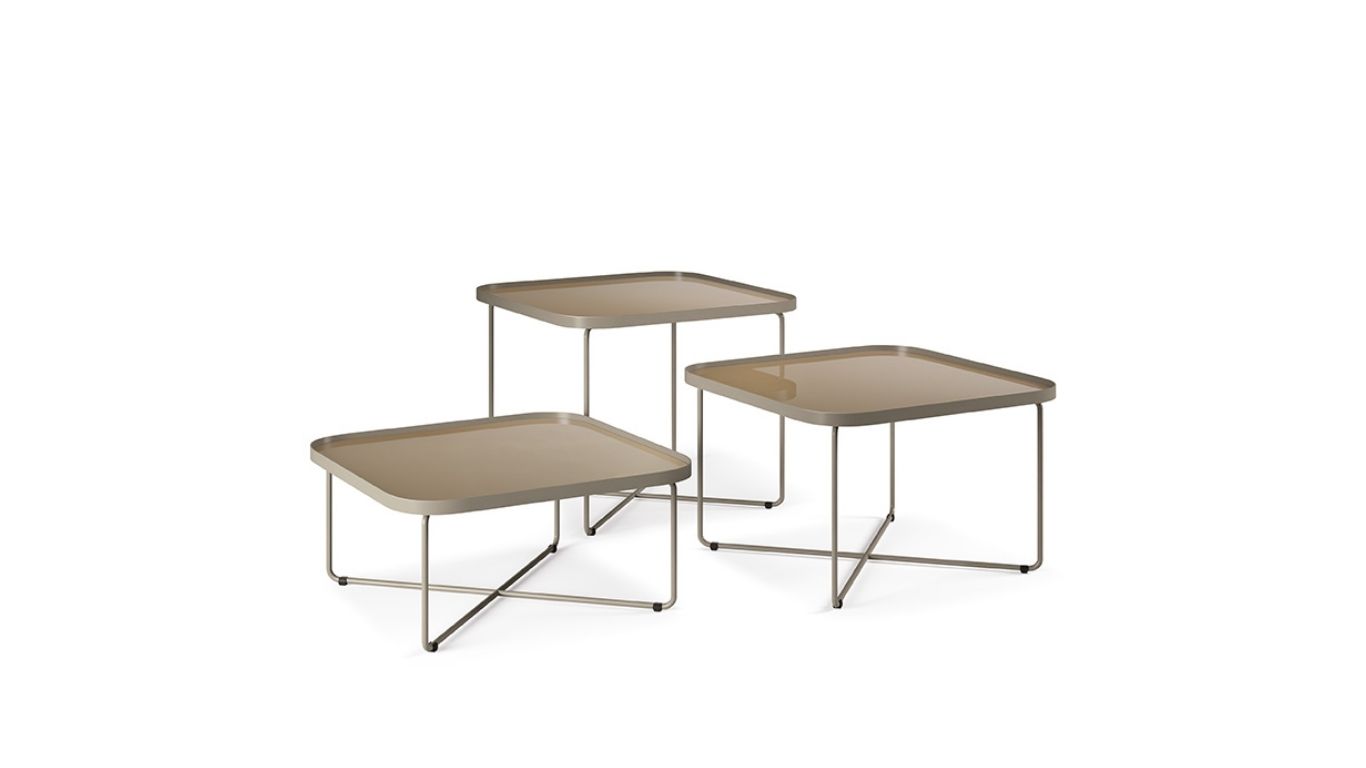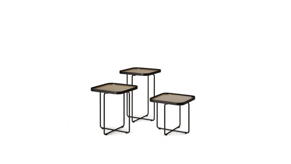 Az asztalok ikonikus eleme az X‑alakú fémláb, amely vizuális könnyedséget ad, mégis erőteljes grafikai jelenléttel bír. Ezek a lábak különösen jól érvényesülnek, amikor a különböző magasságú és méretű modellek egymás mellé kerülnek: a több szintből felépülő kompozíció dinamikus ritmust és rétegzettséget visz a nappaliba.