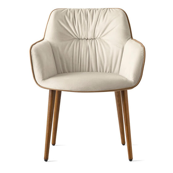A COCOON karosszék a 60-as évek esztétikáját ötvözi a kortárs designnal, hogy egy kényelmes és stílusos ülőélményt nyújtson. A masszívabb váz és a bőséges párnázás gondoskodik a maximális kényelemről, míg a puha szövetborítás fodros részletekkel barátságos, otthonos hangulatot teremt enyhén retró felhangokkal.