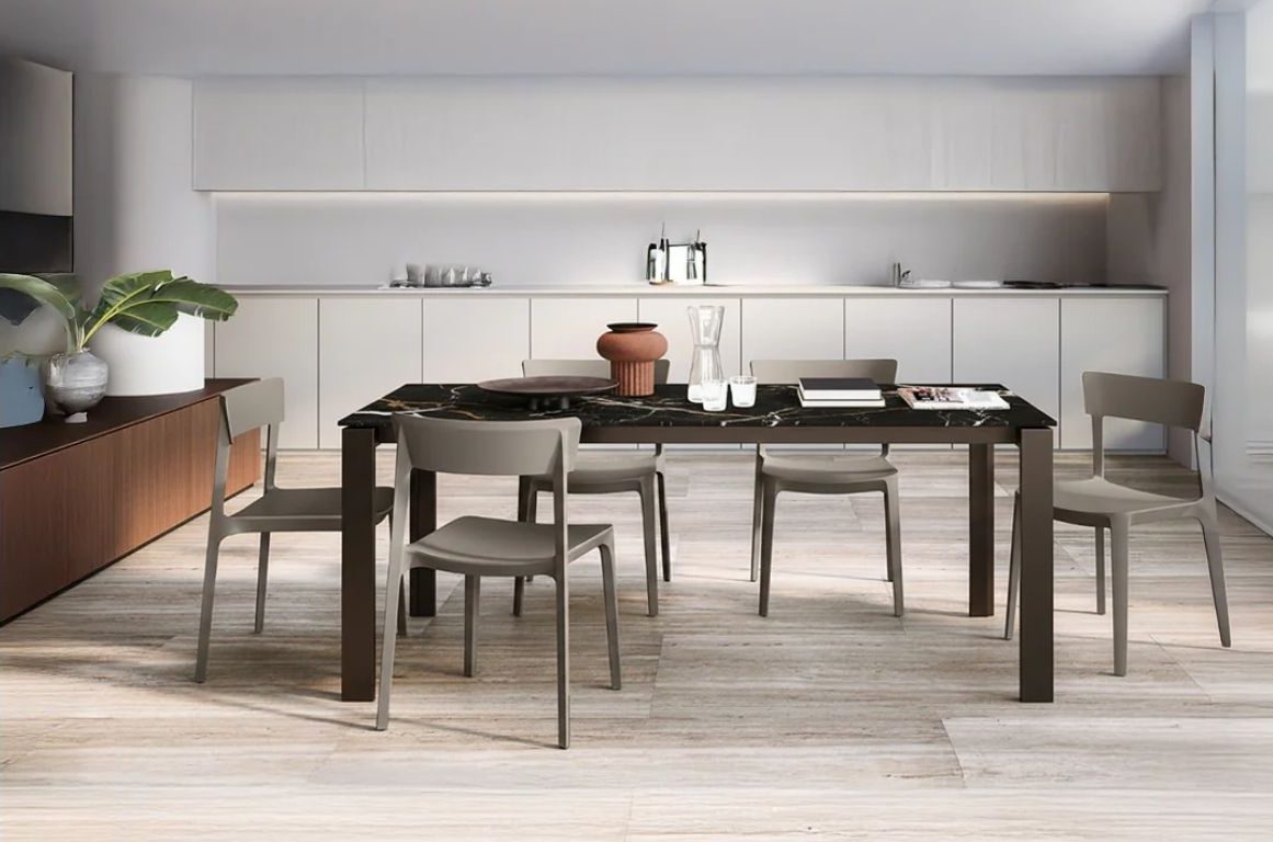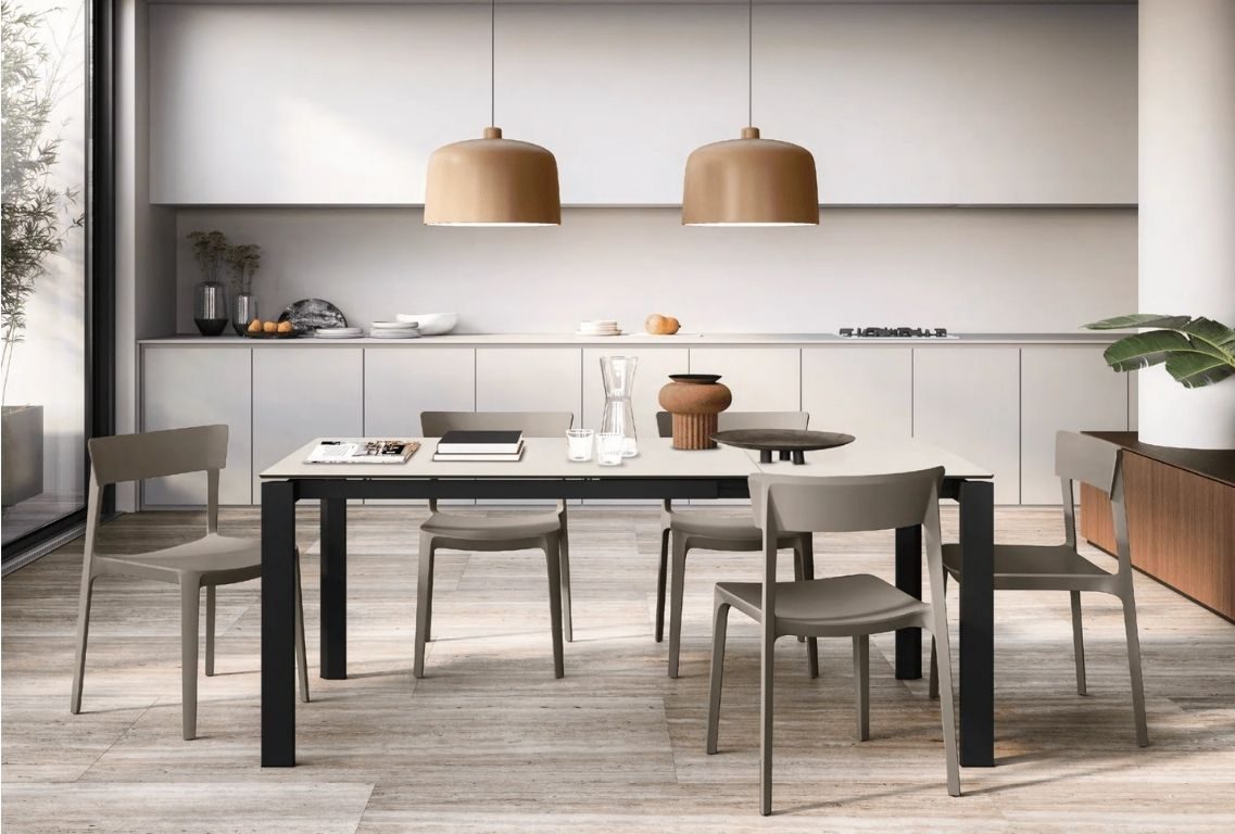 A DUCA kihúzható asztal a modern étkezőterek egyik legsokoldalúbb és legpraktikusabb bútormegoldása. Elegáns fém váza és a többféle asztallap‑anyag lehetővé teszi, hogy az asztal stílusa tökéletesen illeszkedjen a környezethez. A DUCA ideális azoknak, akik egy tartós, könnyen bővíthető és esztétikus étkezőasztalt szeretnének otthonukba.