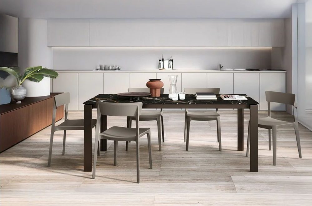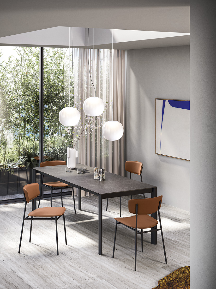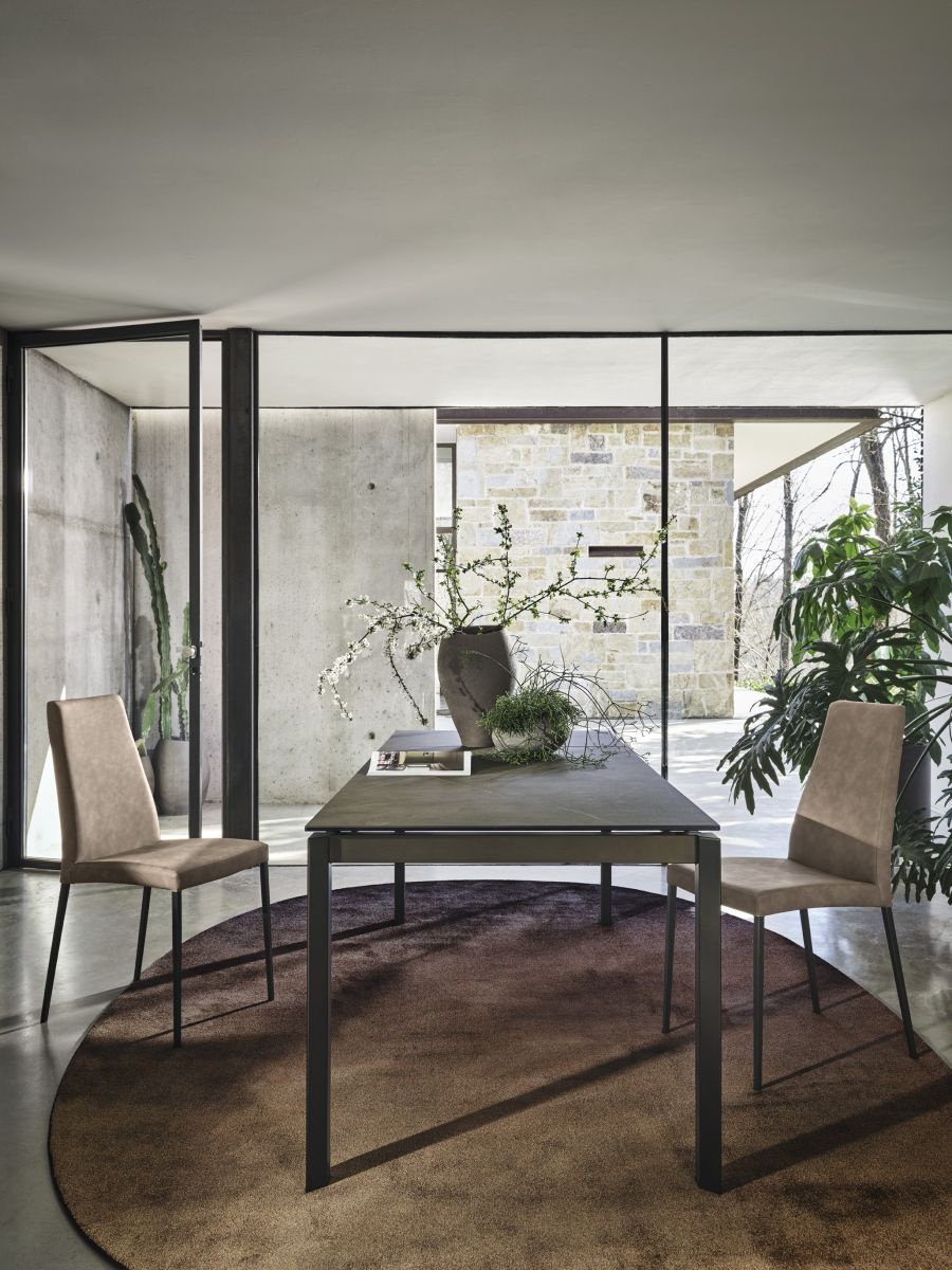 Az étkezőasztal hatféle kerámialappal kérhető. A váza többféle fémfelülettel rendelhető, így könnyedén összehangolható az asztallappal és a környezettel. A váz színválasztéka – fekete, fehér, antracit és bronz – a legtöbb modern enteriőrrel kompatibilis, és időtálló esztétikát nyújt.