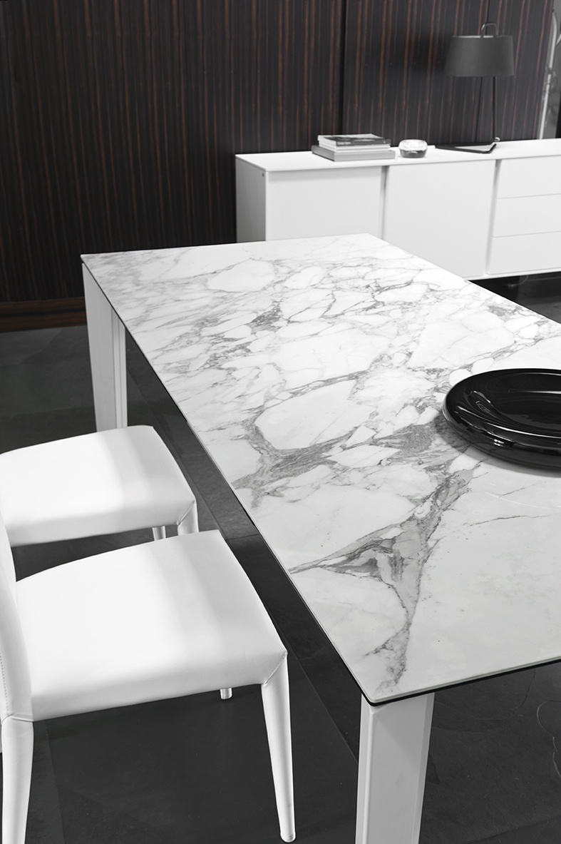 A modell 8-féle kerámia asztalappal és fém lábbal kérhető öt-féle színben (fehér, szürke, fekete, bronz és gyöngyház).