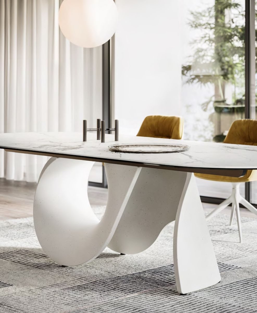 Ez az asztal a kreativitás és funkcionalitás tökéletes metszéspontja. Bár hétköznapi felhasználásra készült, jelenléte szoborszerű, és az enteriőr egyik legerőteljesebb fókuszpontjává válik. A cement talp és a prémium asztallap kombinációja egy olyan modern design‑élményt hoz létre, amely egyszerre minimalista, mégis mélyen művészi – valóban „a lélekhez szól”.