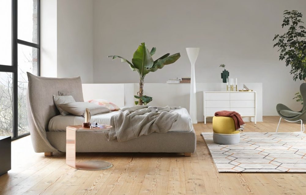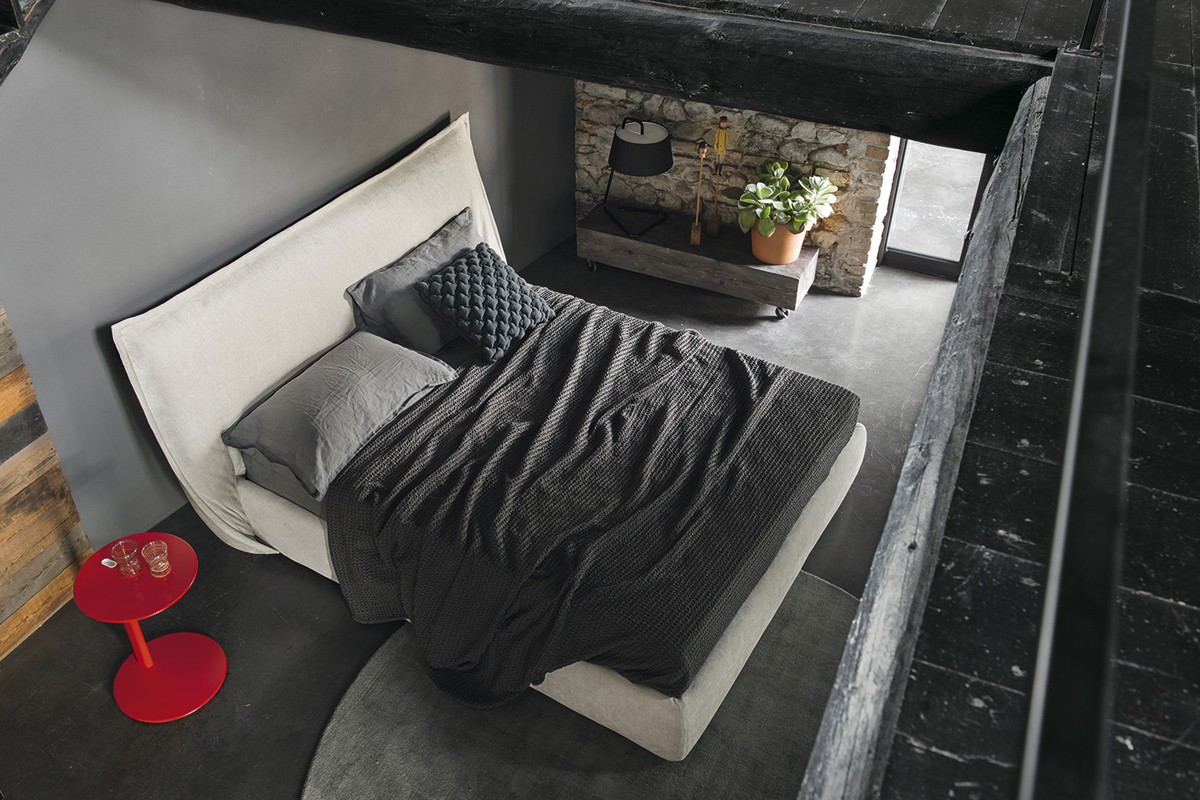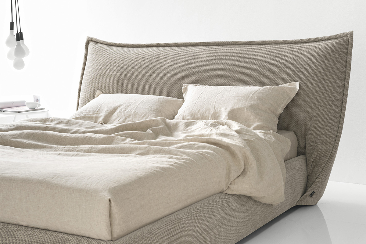 A Ghodesign stúdió által megálmodott SOFTLY franciaágy különlegessége a fejtámla, amely a megszokottól eltérően lágyan rásimul a keretre, amely így egy óvó szárnyat szimbolizál. A rendkívül nagy fejvég a párnázott ágykerettel kombinálva vizuálisan egy rendkívül lágy ágyat alkot.