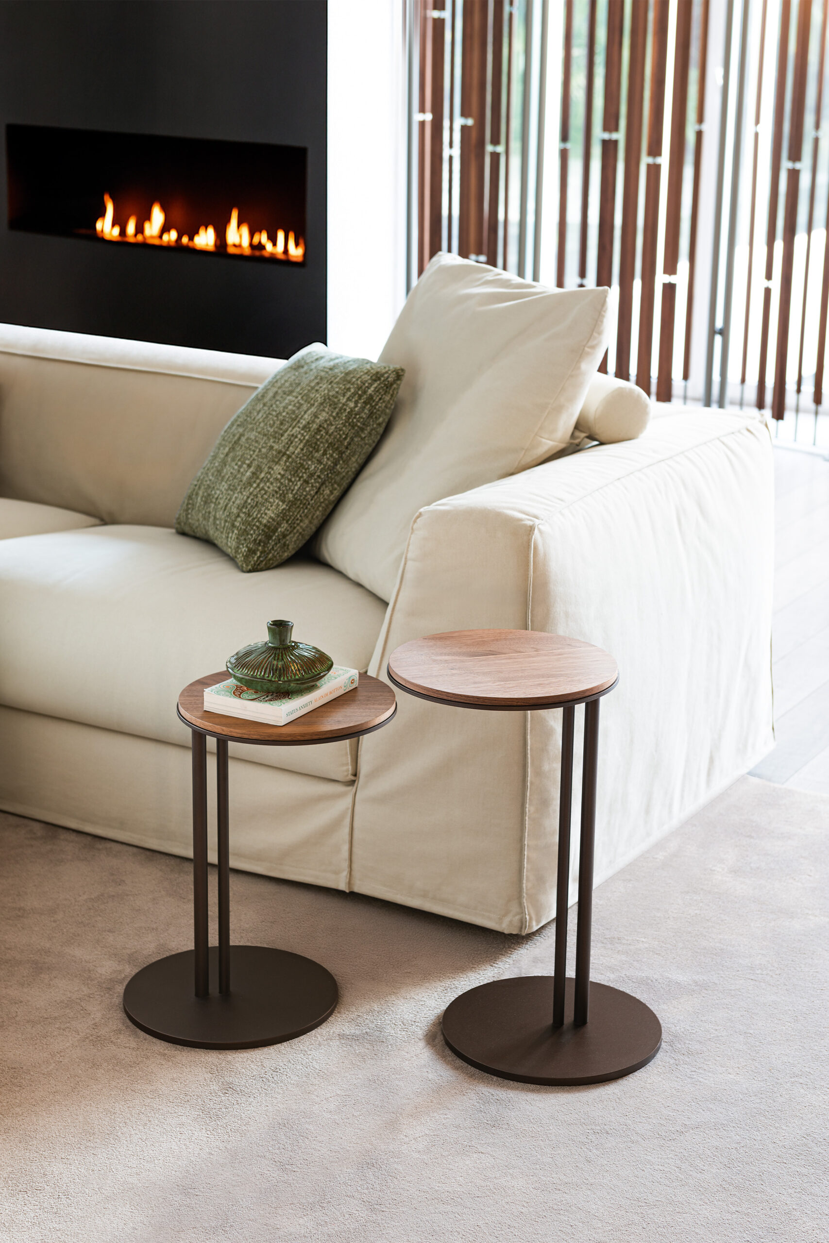 A Sting XL Wood ideális társ a kanapé mellett, legyen szó egy esti aperitifről, vendéglátásról vagy a mindennapi kényelemről. A természetes fa melegsége barátságos, otthonos atmoszférát teremt, amely azonnal közelebb hozza a teret és fokozza a nappali hangulatát. A fém szerkezet matt fekete, bronz, titán, grafit színben, az asztallap amerikai dió és füstölt tölgy furnérral választható.